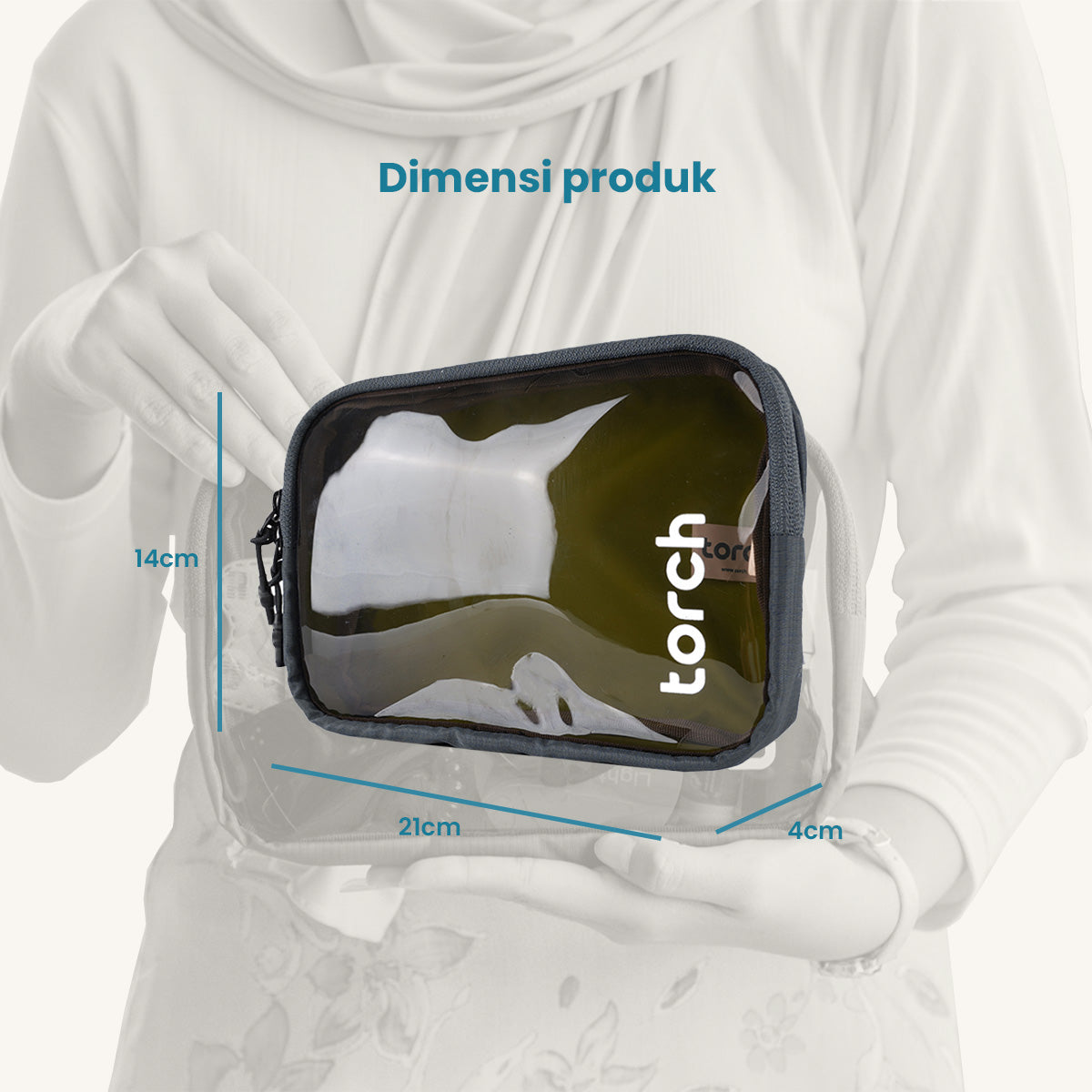Menggunakan material dark lucent pada bagian depan, pouch ini akan memudahkan untuk memastikan barang yang kamu cari dengan lebih mudah.