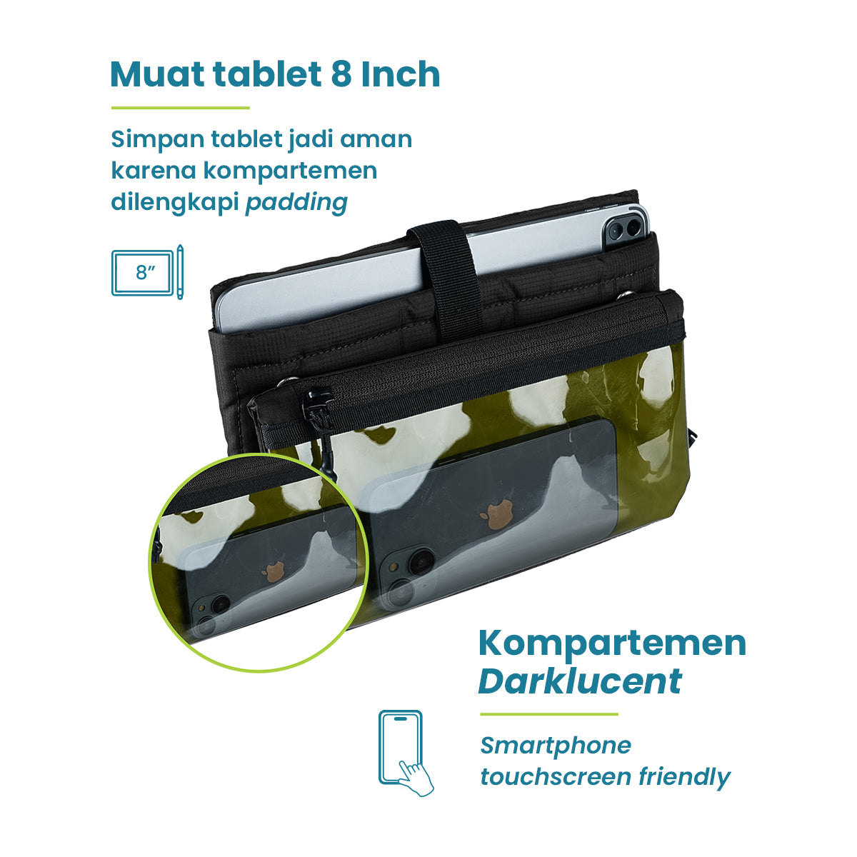 Simpan handphone di kompartemen transparant tas ini, membuatmu jadi lebih mudah untuk melihat notifikasi tanpa harus membuka kompartemen, terlebih lagi saat hujan.