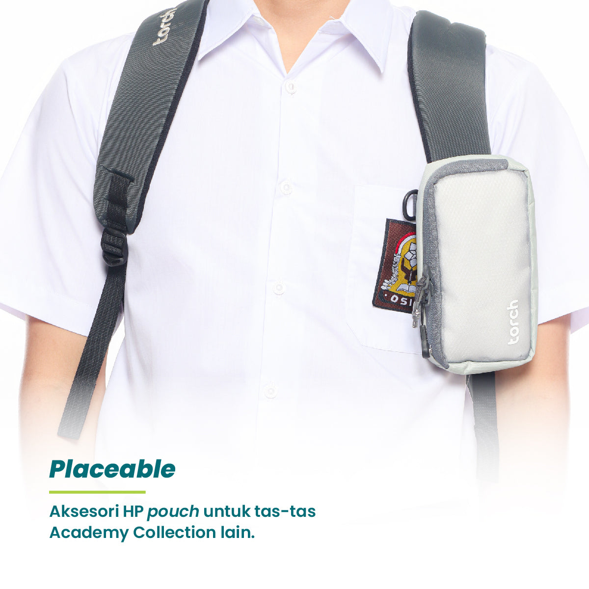 Sebagai aksesori HP pouch yang bisa direkatkan ke shoulder strap tas-tas lain dalam Academy Collection. Lebih mudah simpan dan ambil ponselmu.