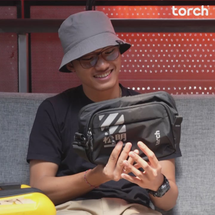 Detail desain Cross Torch pada bagian depan tas membuat tas ini semakin kece saat terkena cahaya dan memunculkan series gamers yang lebih terasa.Â