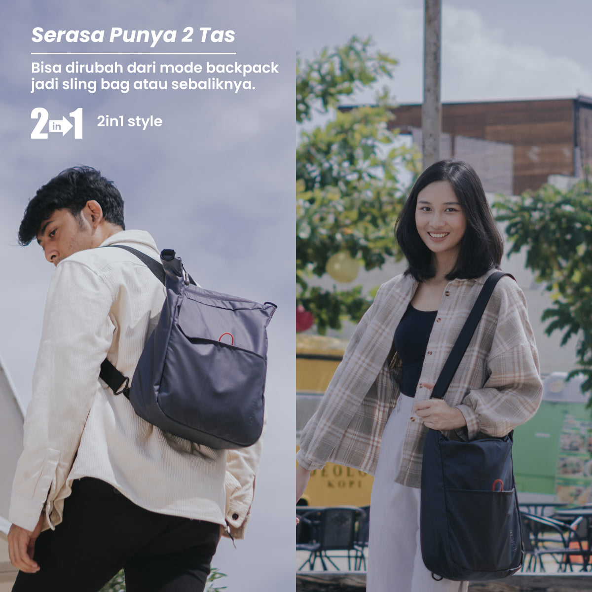 Dapat dijadikan backpack atau sling bag dengan strap webbing yang dapat dilepas pasang