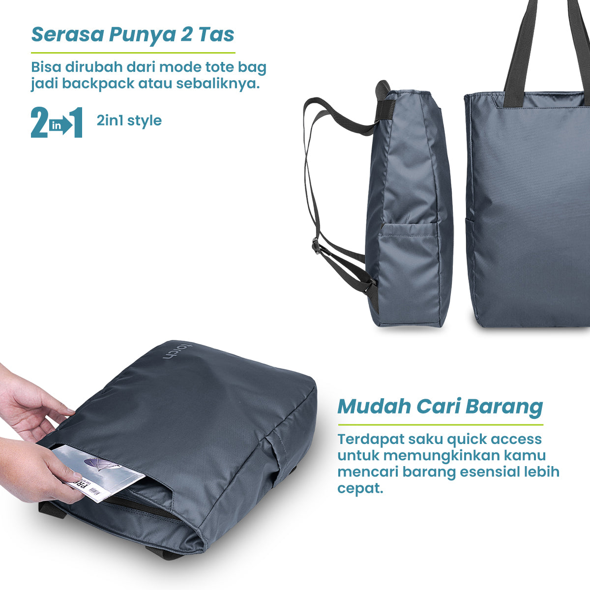 2-in-1 bisa dijadikan backpack dan tote bag