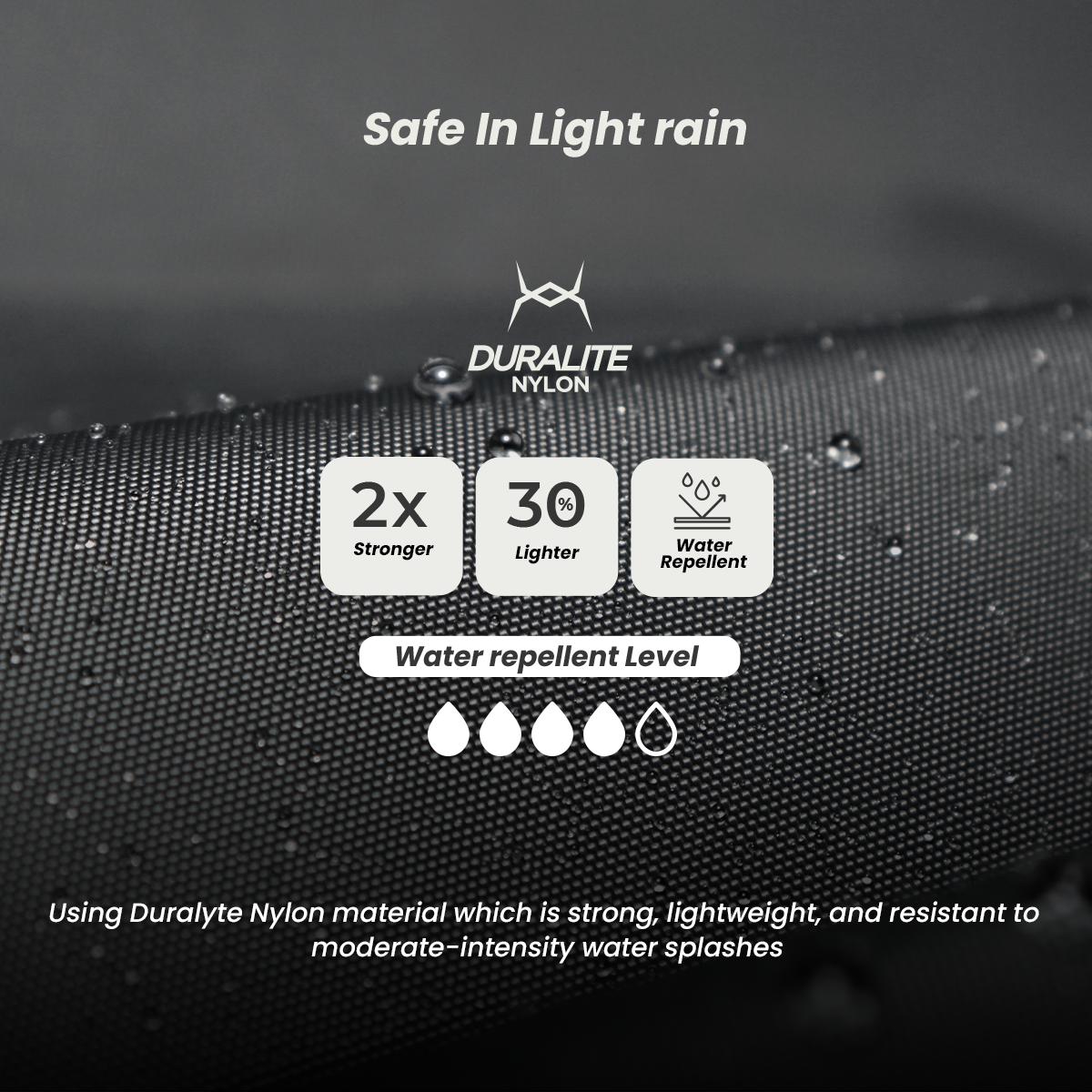 Water repellent. Terbuat dari material poly elable dengan perpaduan dark lucent. Material yang sudah teruji lebih kuat, lentur, dan water repellent.