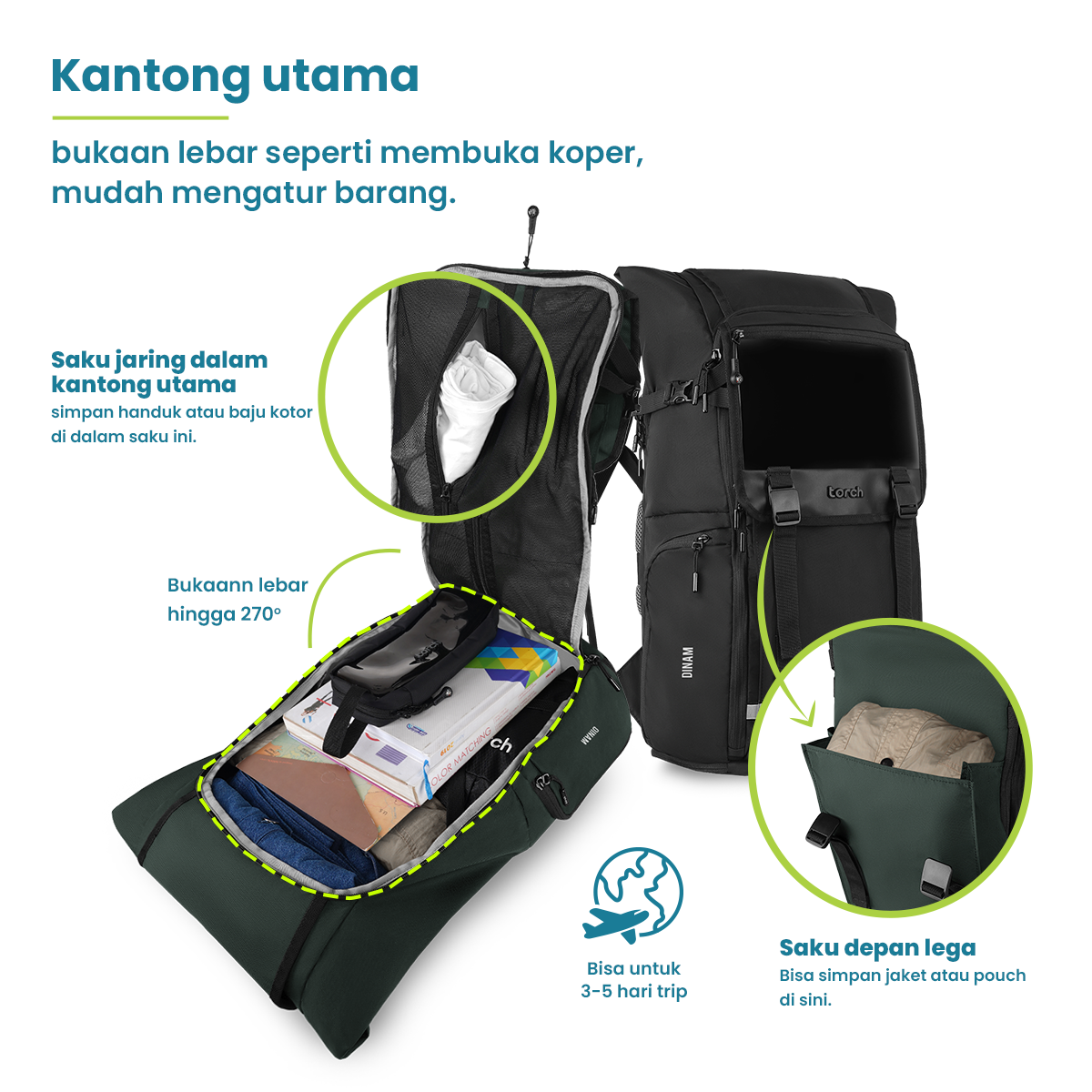 - Tambahan ruang di kantong utama