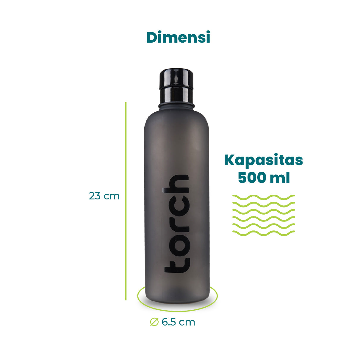 Desainnya yang elegan dan modern dengan warna hitam yang menawan serta tulisan "Torch" yang mencolok memberikan kesan stylish dan profesional. Botol ini juga dilengkapi dengan tutup yang rapat dan aman, mencegah kebocoran dan menjaga kebersihan tas atau barang bawaan Anda.