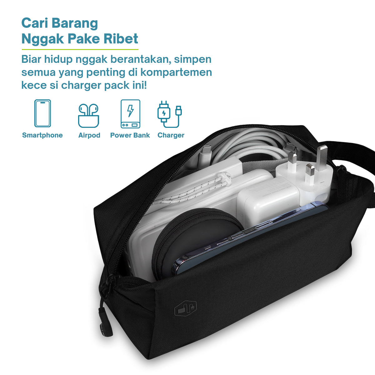 Atur barang kebutuhan sehari–hari dengan lebih rapi dan tertata dengan saat beraktivitas. Series ini dirancang agar pas menyimpan perlengkapan-perlengkapan elektronik kecil seperti charger, flashdisk, harddisk eksternal, dan token.