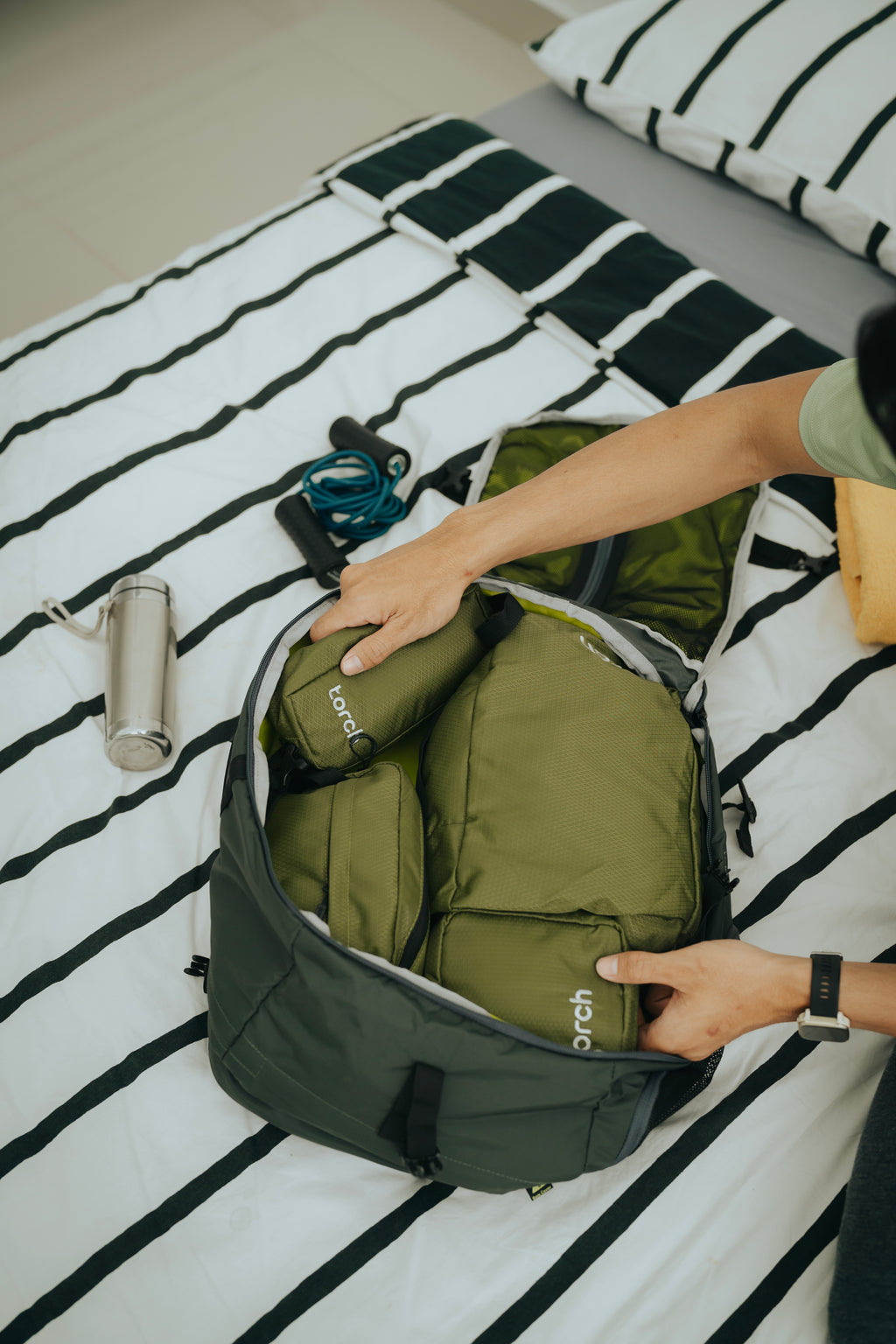Terdapat kantong-kantong besar dan beberapa saku pada tas untuk menyimpan barang-barang dalam perjalanan selama 1 minggu.