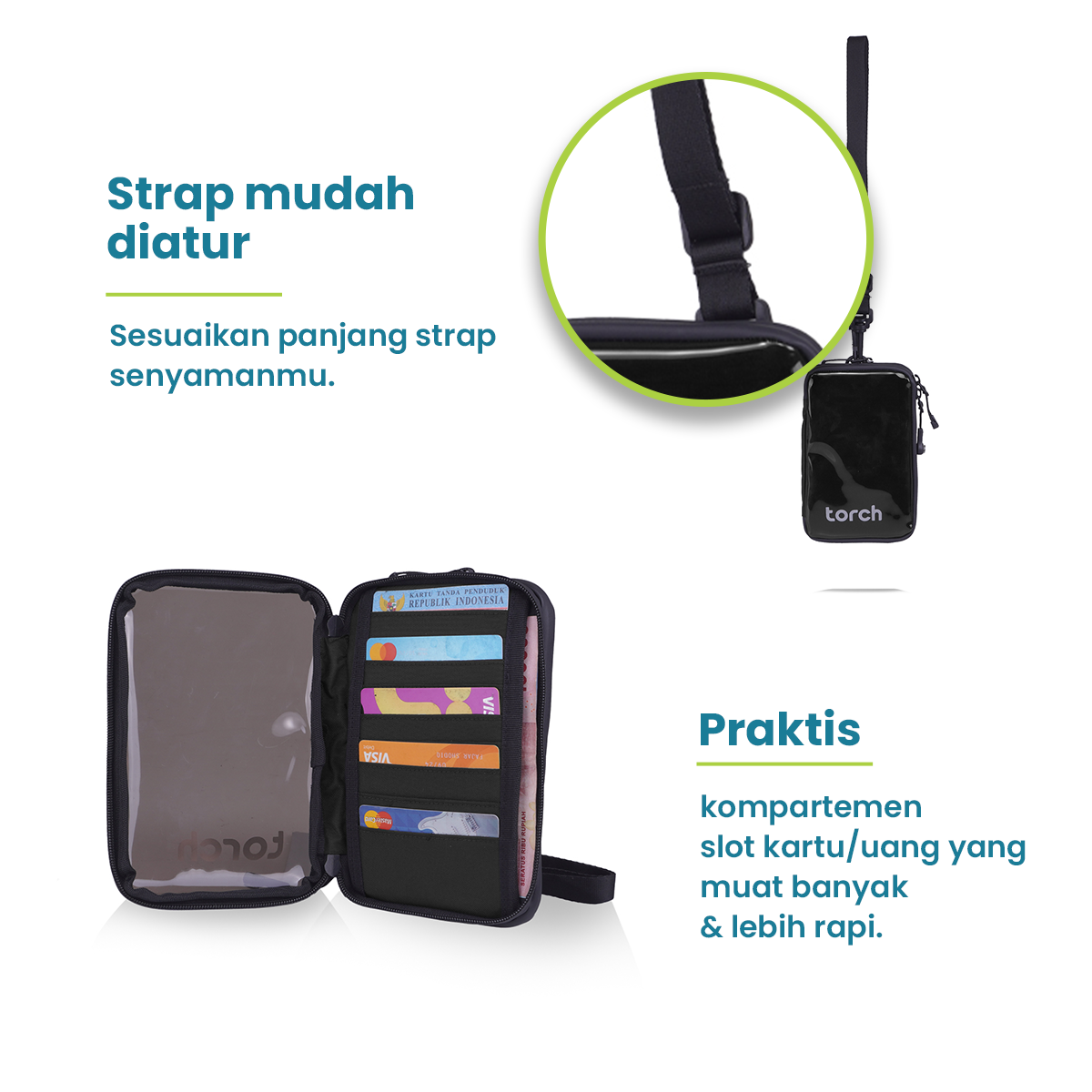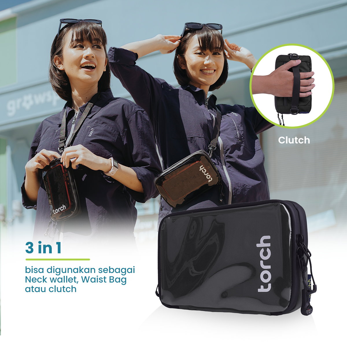 Neck Wallet Best Seller Torch, 1 neck wallet ini bisa dijadikan diselempangkan seperti waist bag, dibawa seperti clutch, atau digantungkan ke leher menjadi neck wallet. Bawa neck wallet ini sebagai pengganti tas kecilmu.