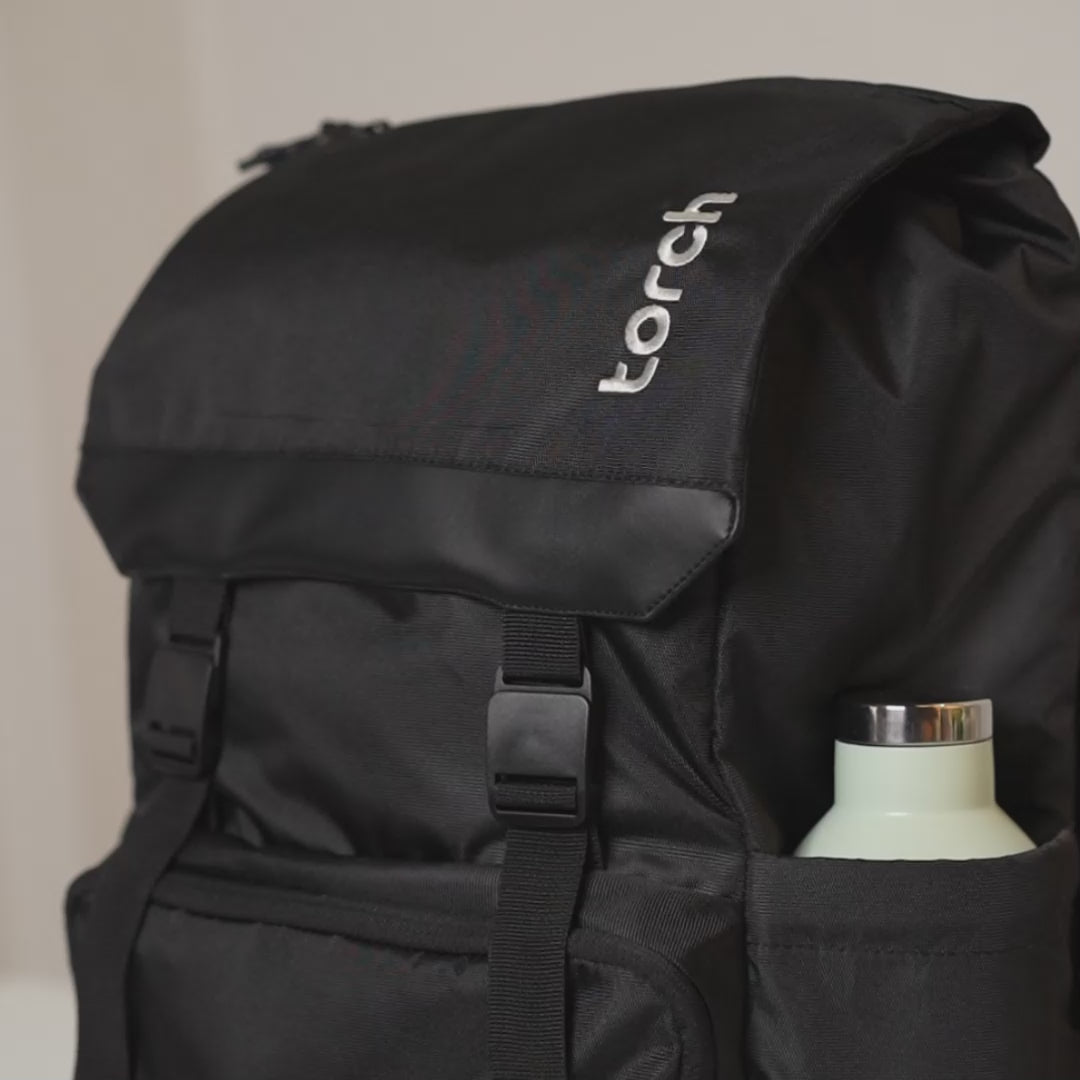Terdapat saku samping yang bisa kamu manfaatkan untuk simpan botol minum hingga ukuran 600 ml dengan aman.