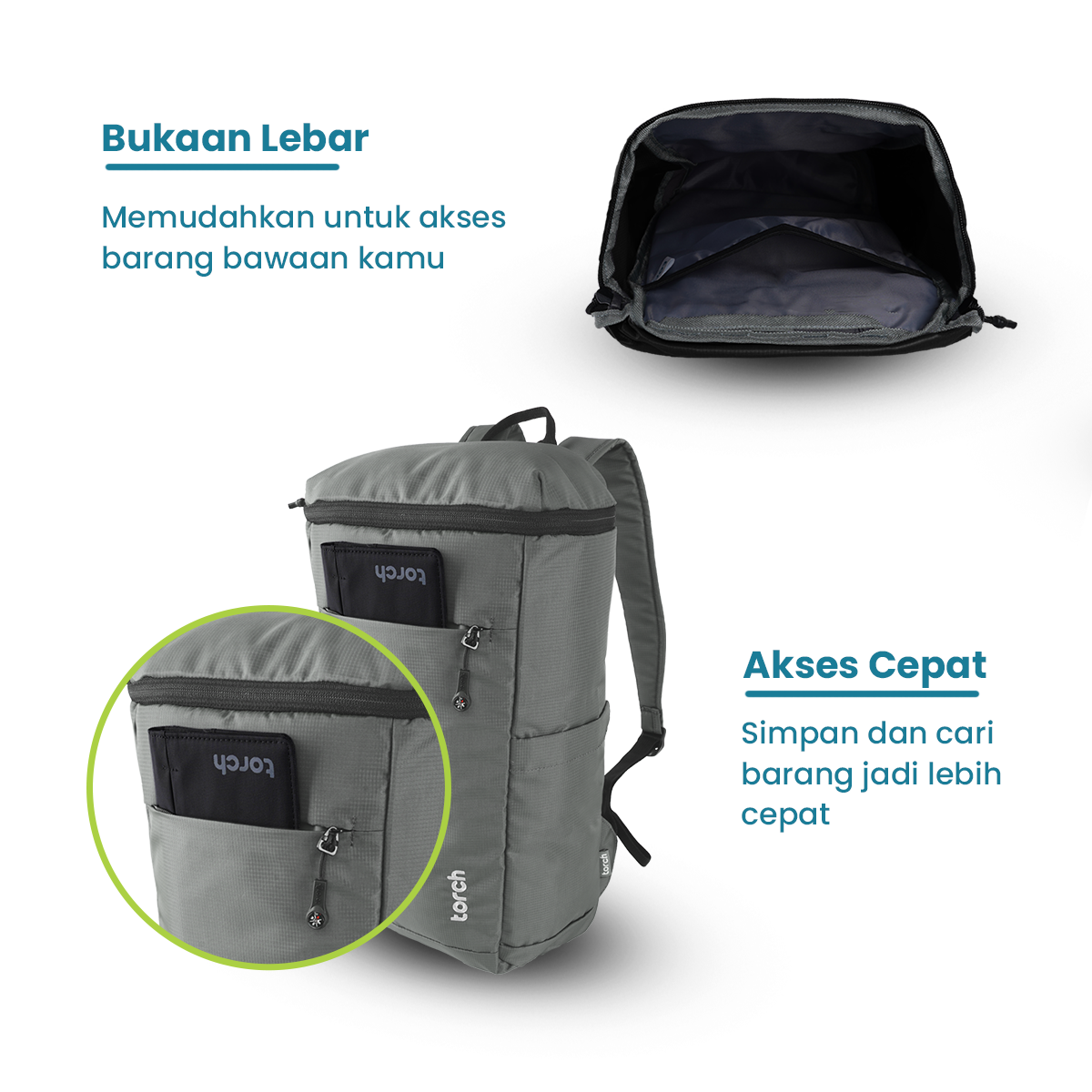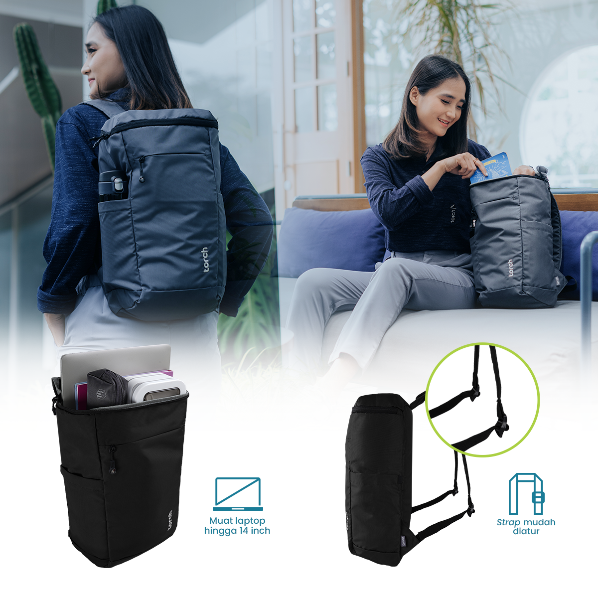 Tas murah dan hemat dari Torch ini dinamakan si ringan, yang bisa masuk apa pun. Sampai-sampai bisa masuk laptop up to 14 inch. Tapi dengan catatan tetap pakai sleeve atau sarung pelindung laptop biar lebih aman.