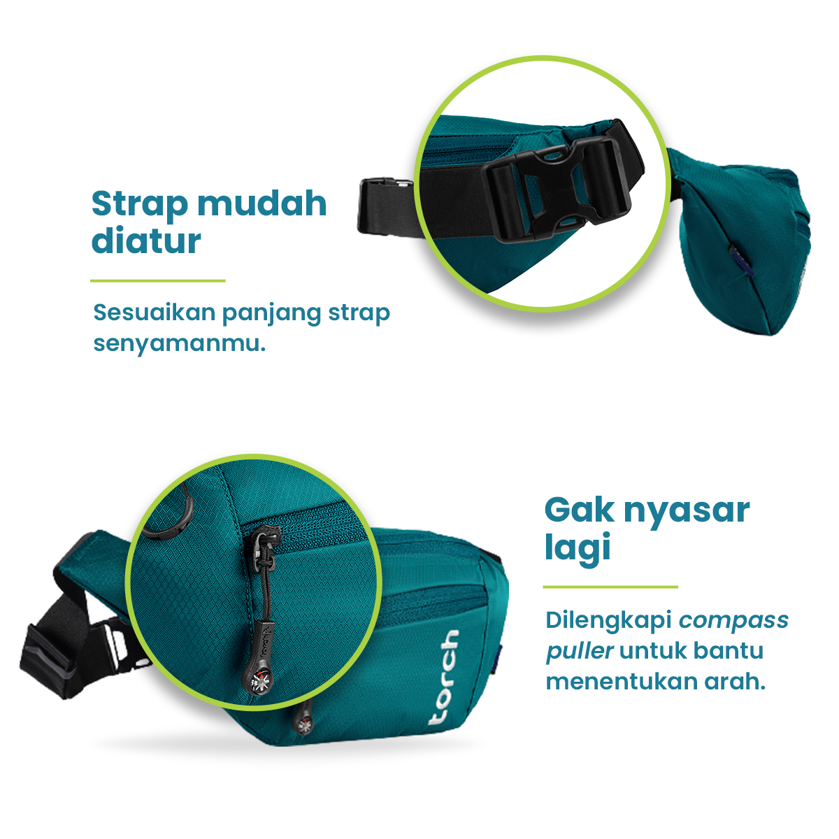 Strap yang memudahkan kita untuk mengatur strap sesuai dengan ukuran tubuh. Terdapat buckle yang juga memudahkan pemakaian.