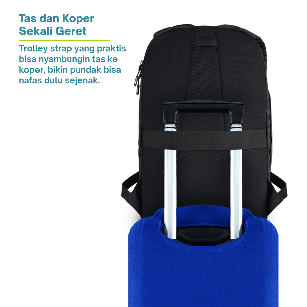 Trolley strap yang praktis bisa nyambungin tas ke koper, bikin pundak bisa nafas dulu sejenak.