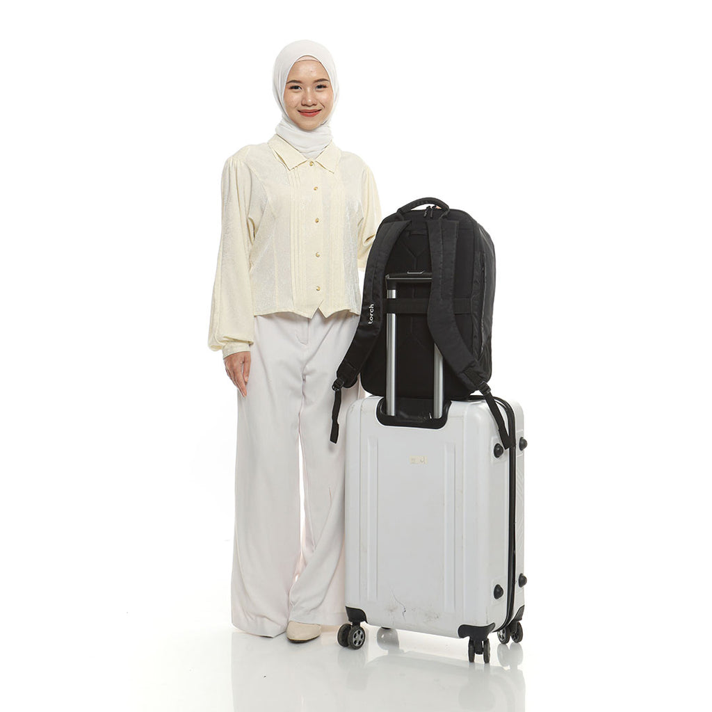 Trolley strap yang praktis bisa nyambungin tas ke koper, bikin pundak bisa nafas dulu sejenak.