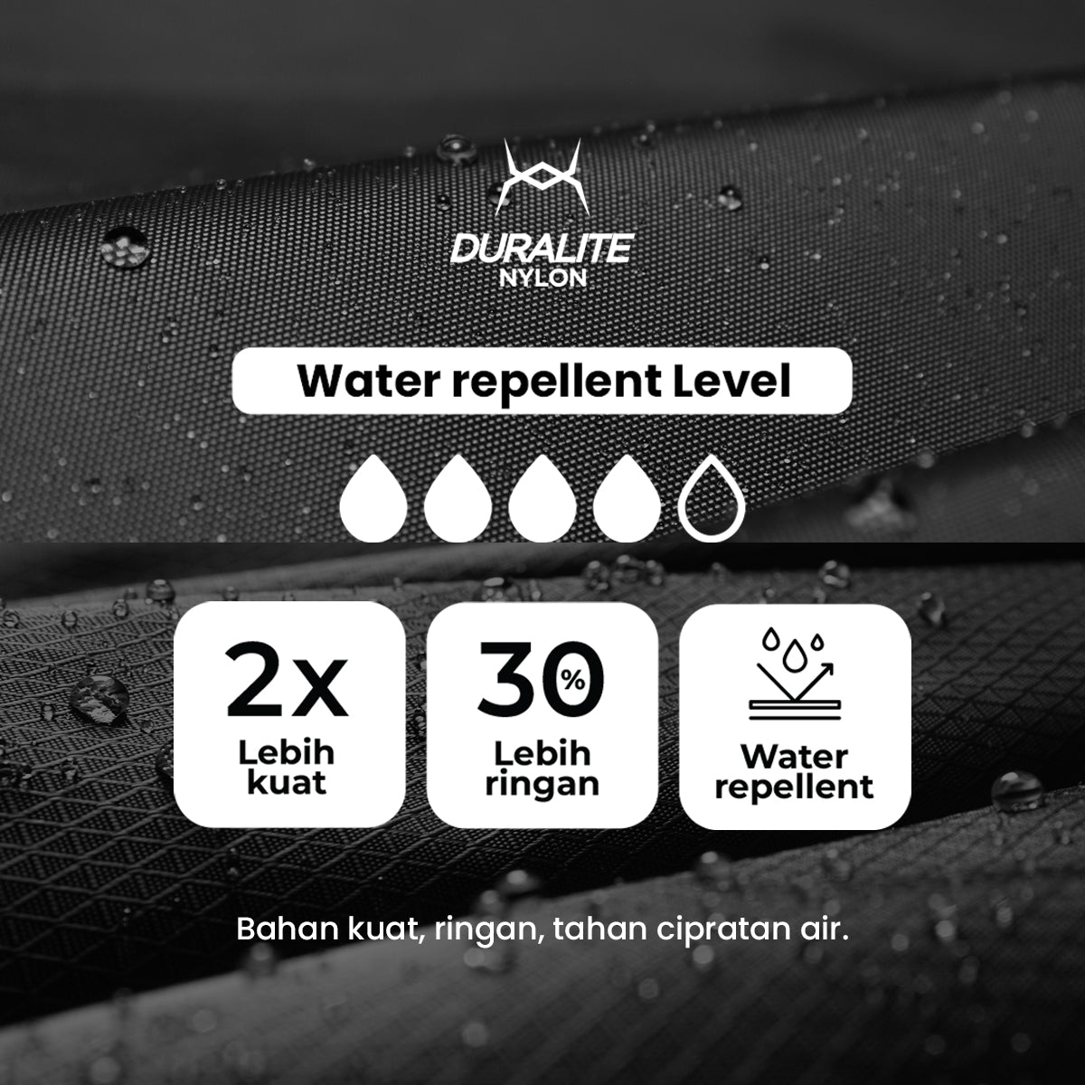 terbuat dari material Duralite Nylon X7 yang durable dan lebih tahan air dengan intensitas sedang