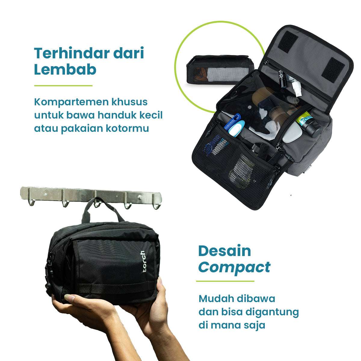 Tas ini sengaja di desain untuk memudahkanmu saat membawa keperluan toilet saat sedang bepergian. Karena punya bukaan yang lebar ditambah saku organizer.