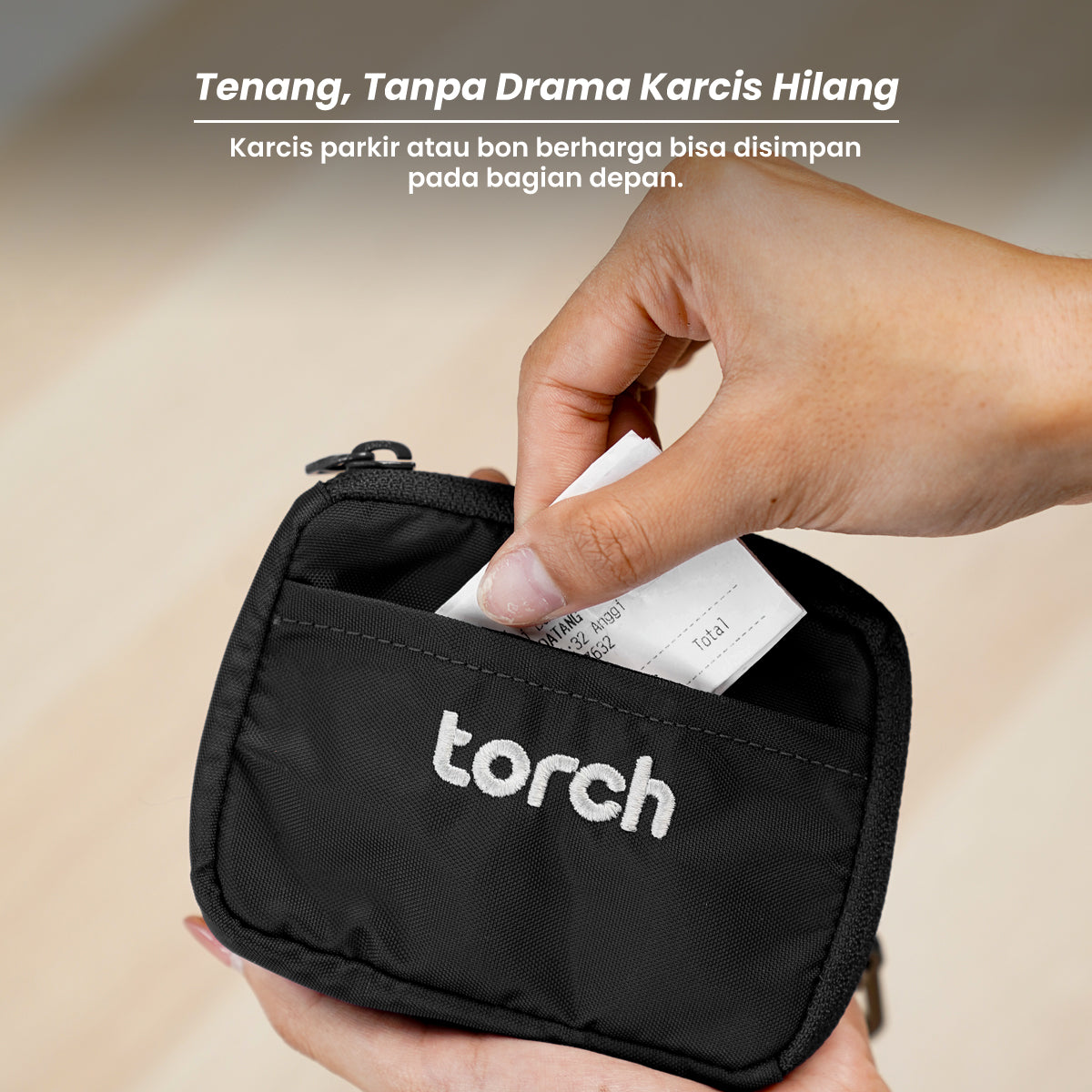 Di bagian kantong utama ada sekat yang memudahkan kamu untuk simpan uang, kartu debit, e-money, surat-surat berharga seperti STNK motor atau mobil, sampai koin.