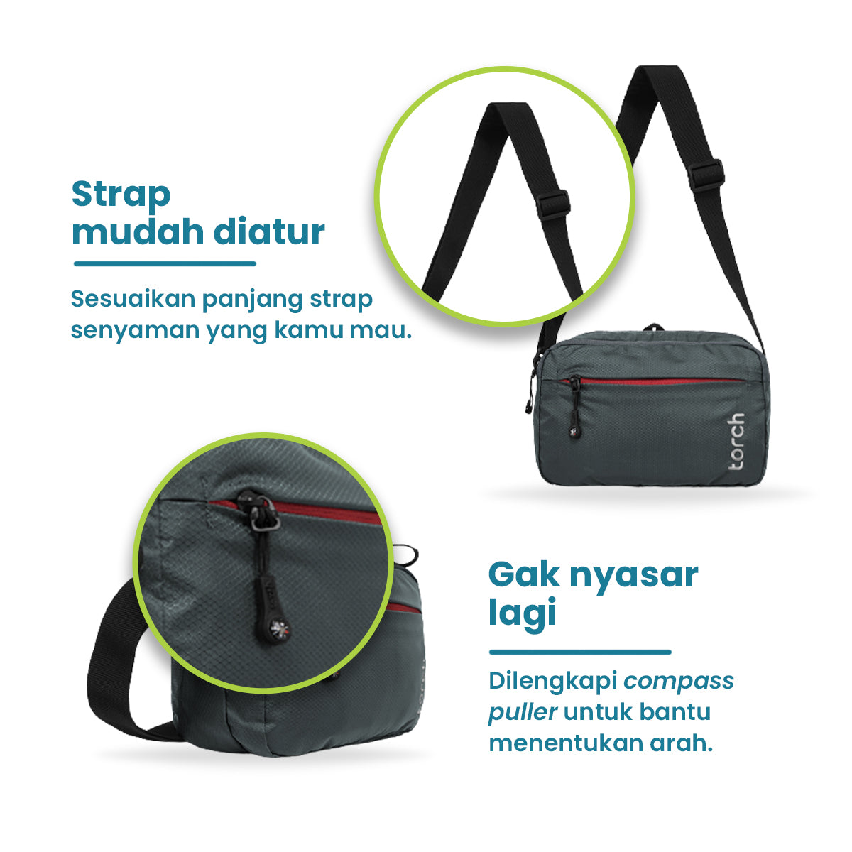 Terdapat compas puller di saku depan yang membantu kamu menentukan arah saat tersesat di kegiatan travelingmu.