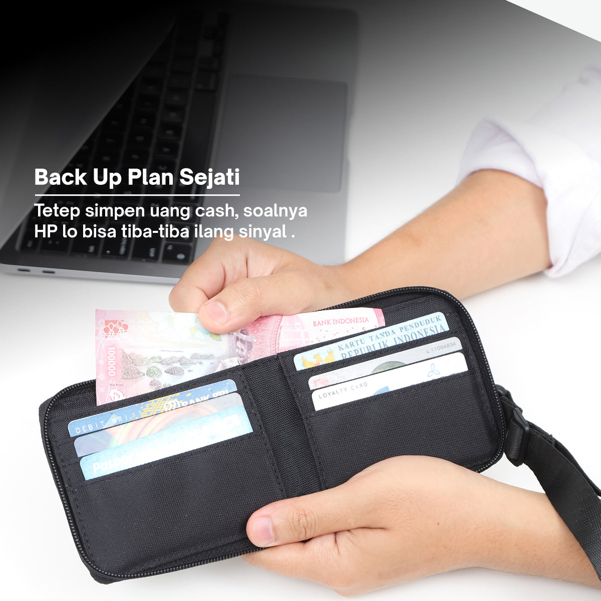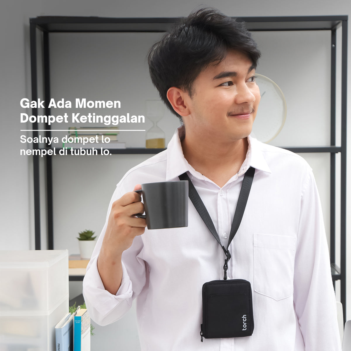 Dompet ini bisa lo gantungin di leher. Nggak ribet, gak nyelip di tas, dan yang paling penting: tangan lo jadi bebas. Mau gandeng pasangan, megang jajan, atau sekadar gesek-gesek e-money—semua bisa.