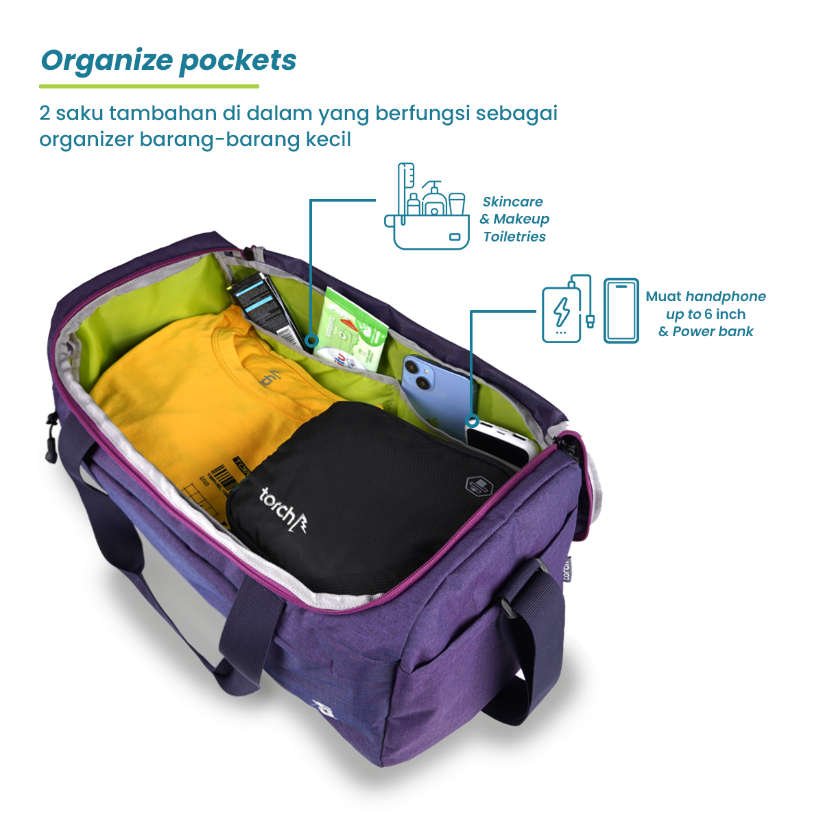 Dengan kompartemen utama yang luas ditambah 2 saku di dalam, kamu bisa mengatur barang-barang lebih rapi dan sesuai gayamu.