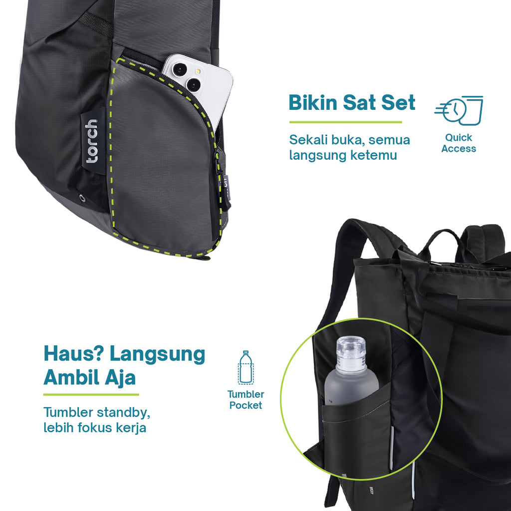 Lagi butuh penampilan yang lebih chic? Ganti backpack jadi tote bag. Masukin strap backpack ke risleting belakang tas biar rapi dan jadi tote bag. Strapnya juga udah ada paddingnya, ga bikin pegel.