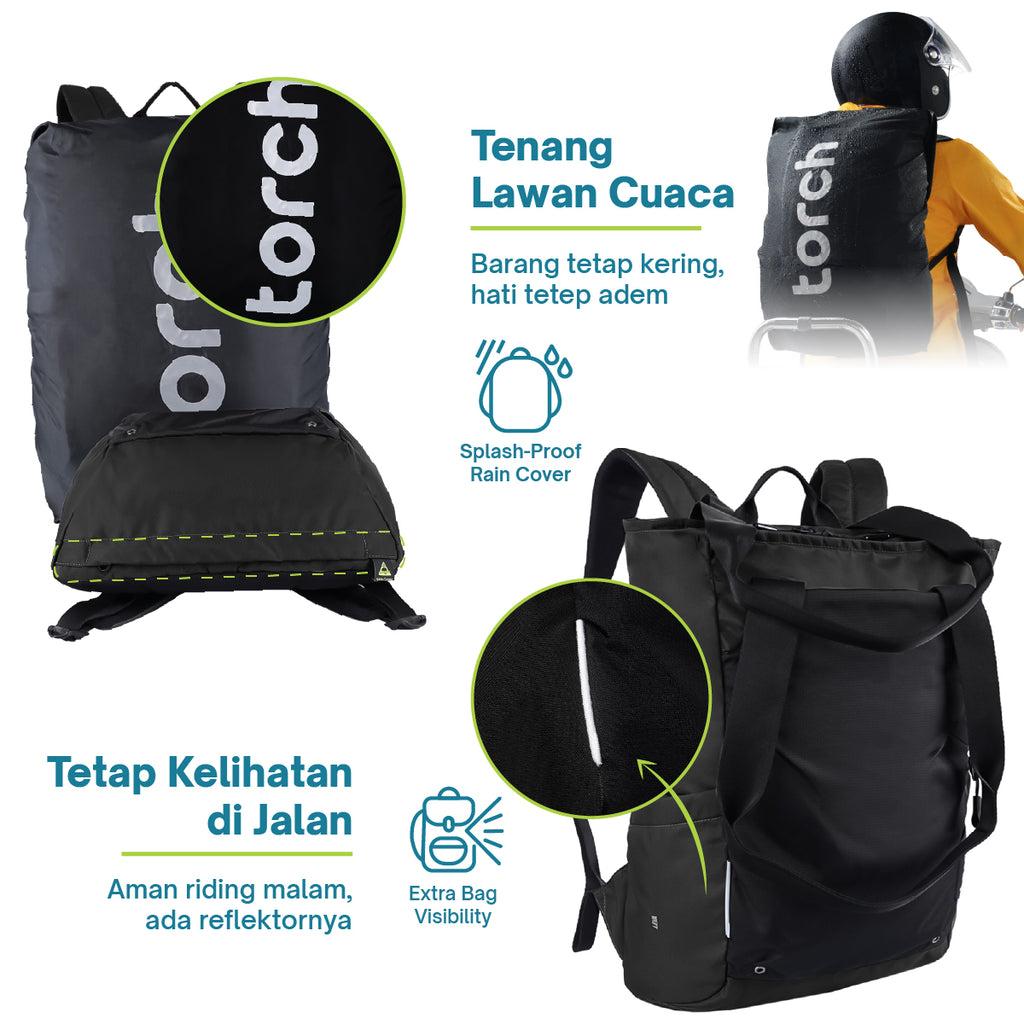 Tas ini didesain biar bisa ngikutin gaya lu. Mau jadi backpack, tote bag, atau disimpen di trolley koper pas dinas keluar kota, semua auto siap.