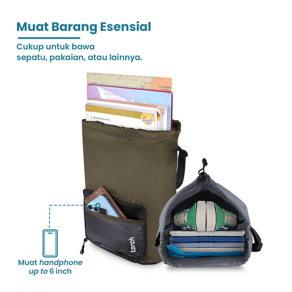 Walaupun terlihat kecil, pouch yang ini bisa kamu jadikan tas serut dengan ukuran yang cukup besar dan compact untuk bawa semua barang kebutuhanmu.