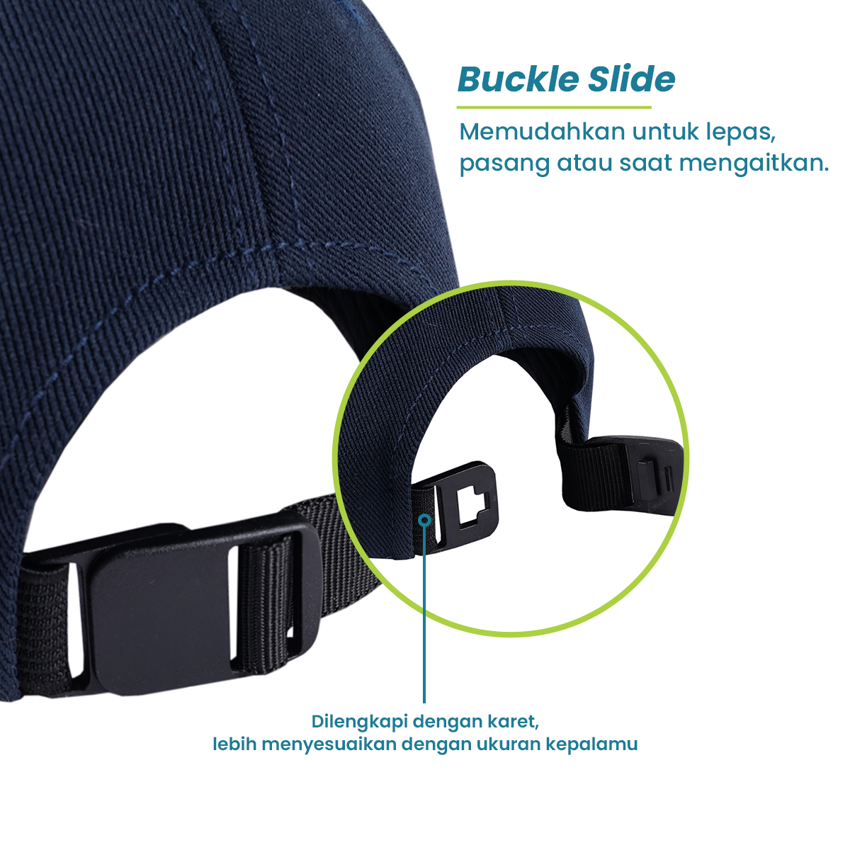 Punya fitur buckle slide yang memudahkanmu untuk membawa topi ini dan kaitkan di tas atau kuping celana.