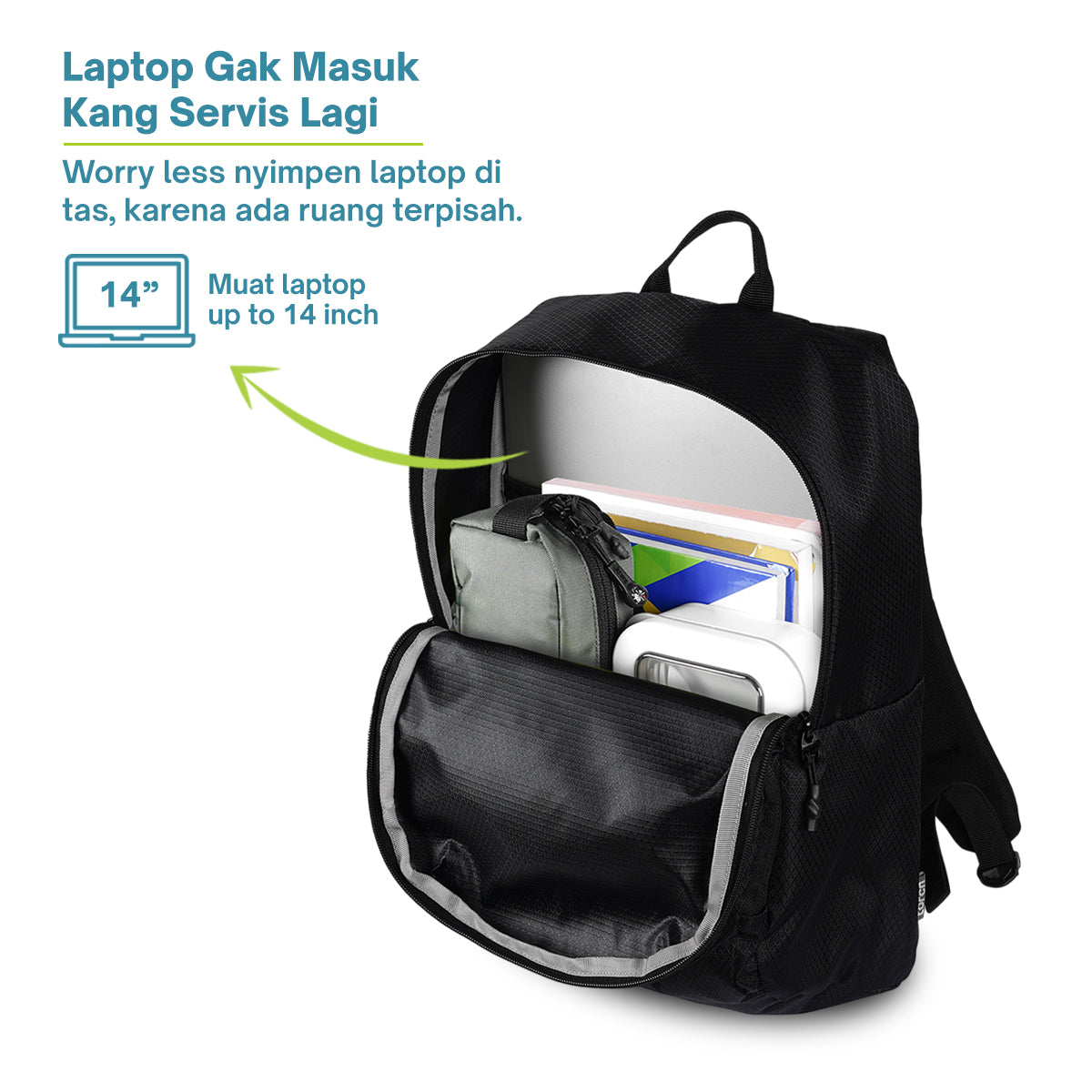 Dengan kapasitas kurang lebih 16 liter, tas ini bisa muat untuk bawa 5 buku mata pelajaran ditambah dengan laptop berukuran hingga 14 inch. Kamu juga masih bisa bawa barang seperti topi upacara, pin ekstrakulikuler, power bank, hape, dan alat tulis.Â