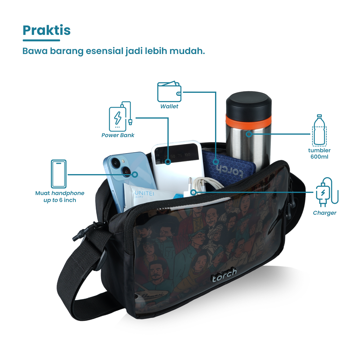 Selain bentuk tas yang simple, bagian depan tas ini menggunakan material Dark Lucent yang bakal bikin tampilan kamu semakin trendi untuk setiap aktivitas.