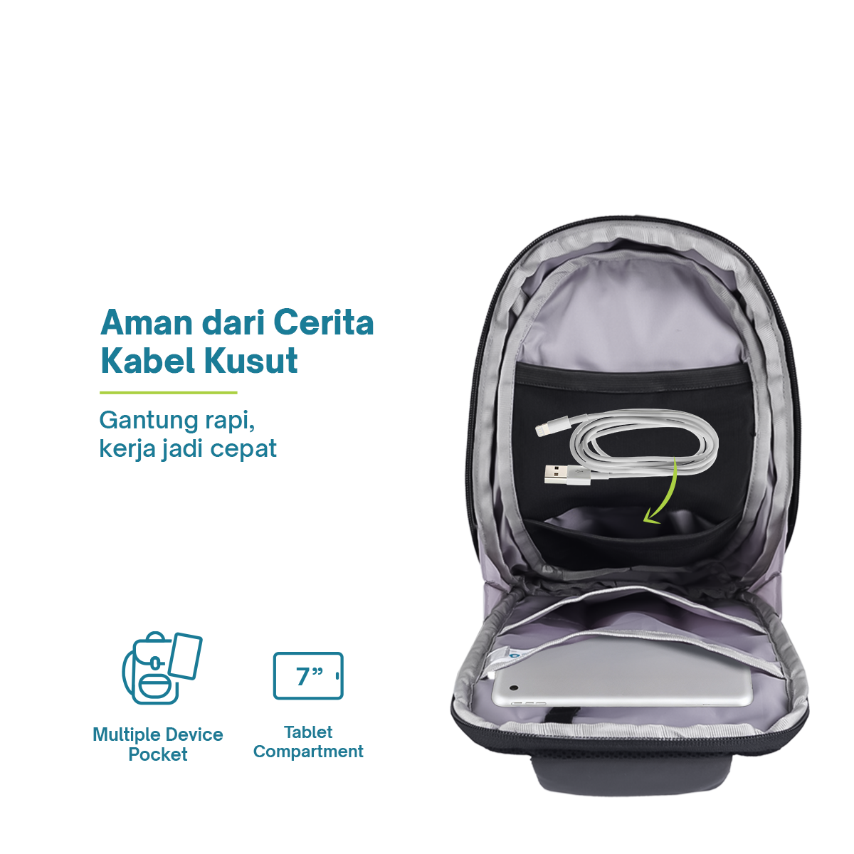 Charger Type-C, lightning, micro USB, semuanya bisa lu simpen di sini. Rapi, gak kusut kayak pikiran pas tanggal tua.