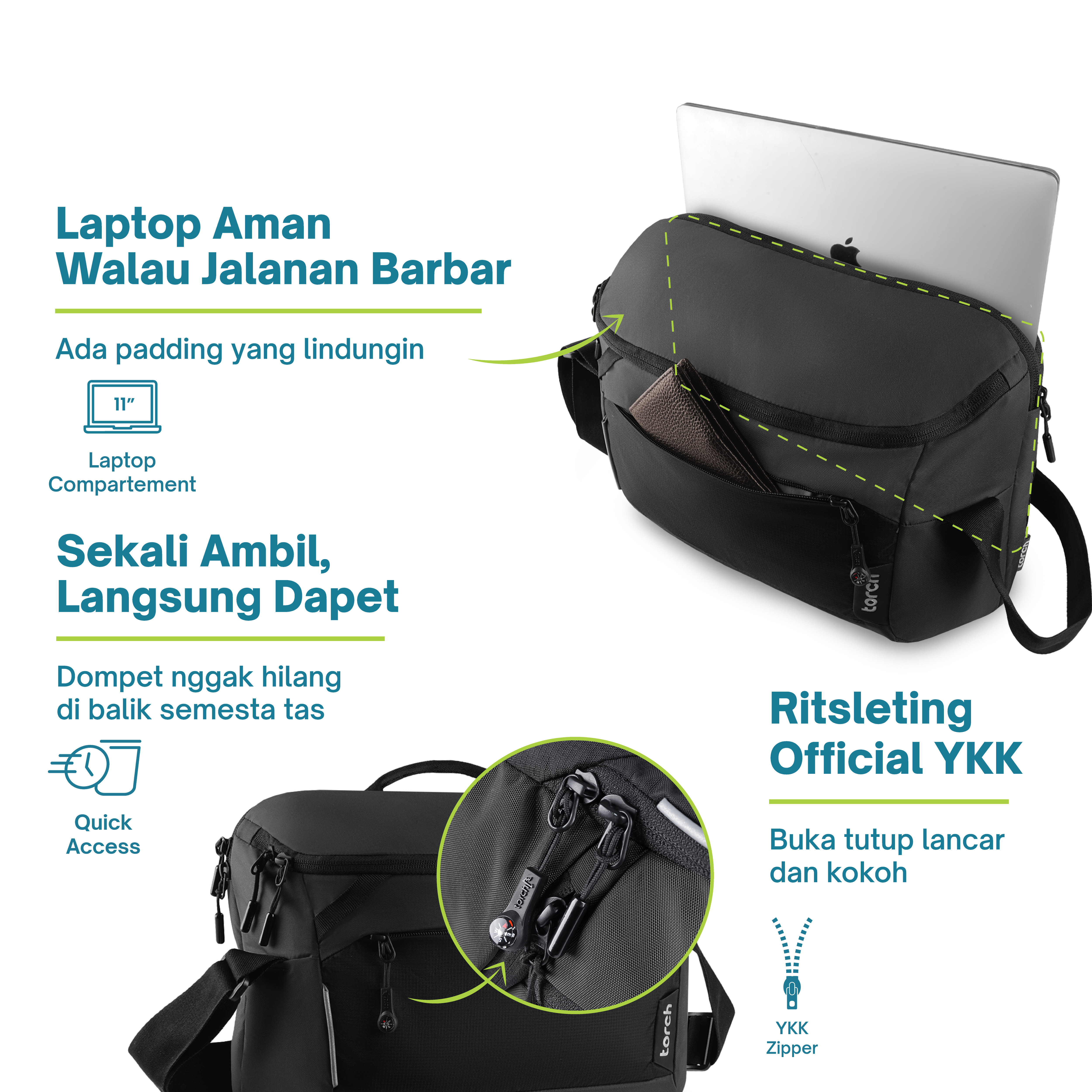 Messenger bag ini didesain buat lu yang tiap pagi ngegas ke kantor naik motor, tapi pengen semua barang lu aman, rapi, dan yang penting: keliatan kayak hidup lu tuh well-organized.