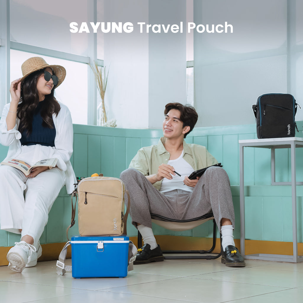 Menjadi ciri khas dari tas Sayung Travel Pouch! Saku depan yang sengaja didesain unik agar tas kamu memiliki keunikan tersendiri. Tenang, tetap oke untuk dibawa saat on duty.