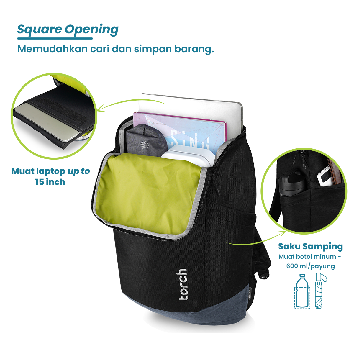 Punya fitur square opening pada bagian atas, bakalan ngemudahin kamu untuk cari atau simpan barang jadi lebih mudah.Â