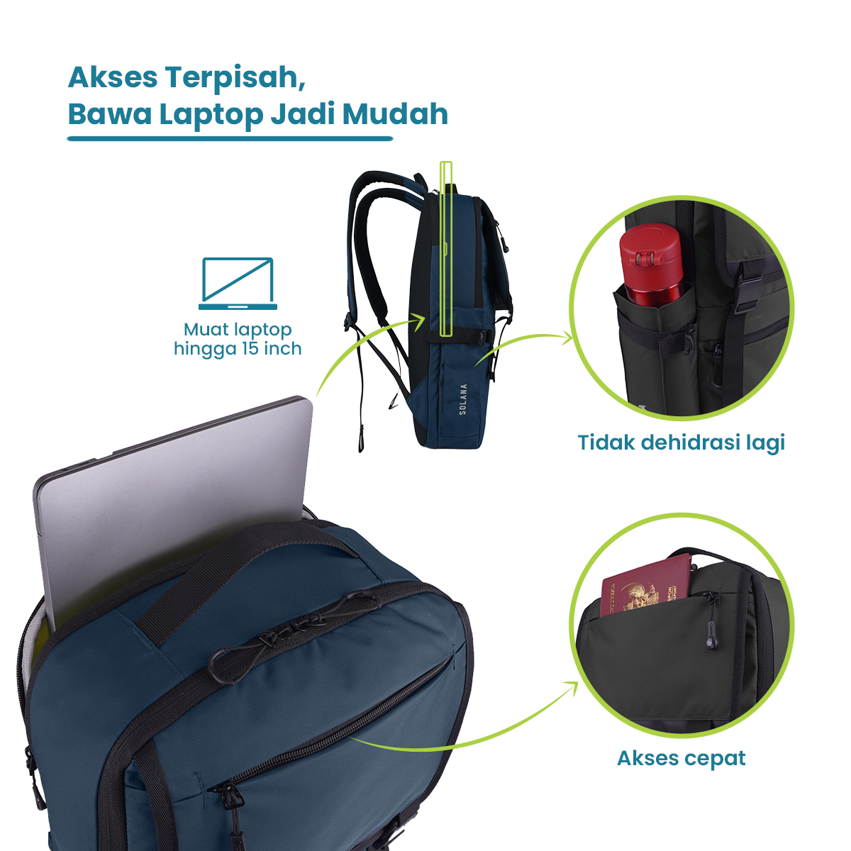 Cuaca sering hujan? Gak akan jadi masalah selama kamu bawa Solana backpack karena sudah anti air dengan intensitas sedang.