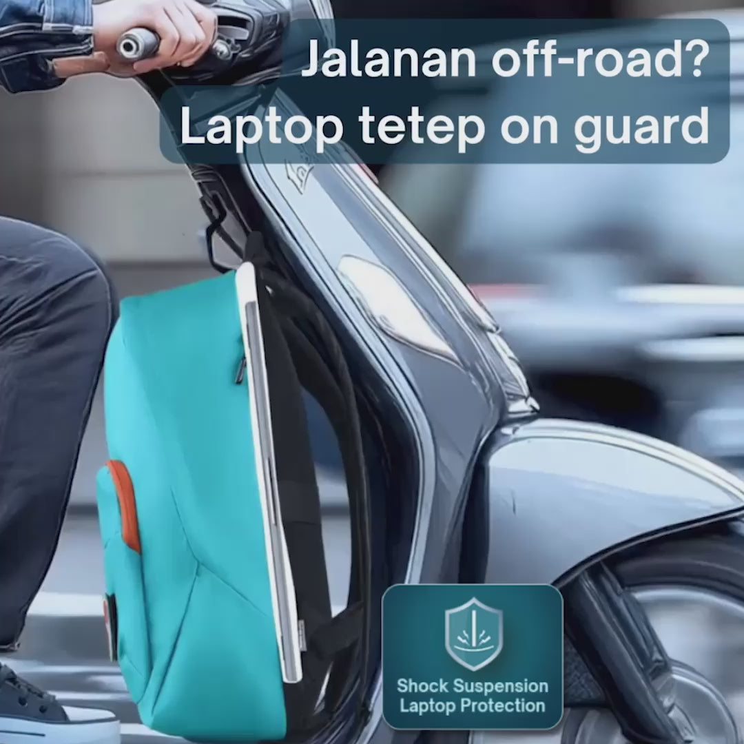 Semua yang lo butuhin muat di kompartemen utama dengan kapasitas 26 liter, sementara laptop tetap aman di kompartemen terpisah dengan Shock Suspension Laptop Protection biar lebih aman dari benturan. Tas bebas bau saat bawa sepatu, sepatu disimpan terpisah di kompartemen khusus. Gak khawatir bau saat bawa sepatu, sepatu lo disimpen terpisah di kompartemen khusus.