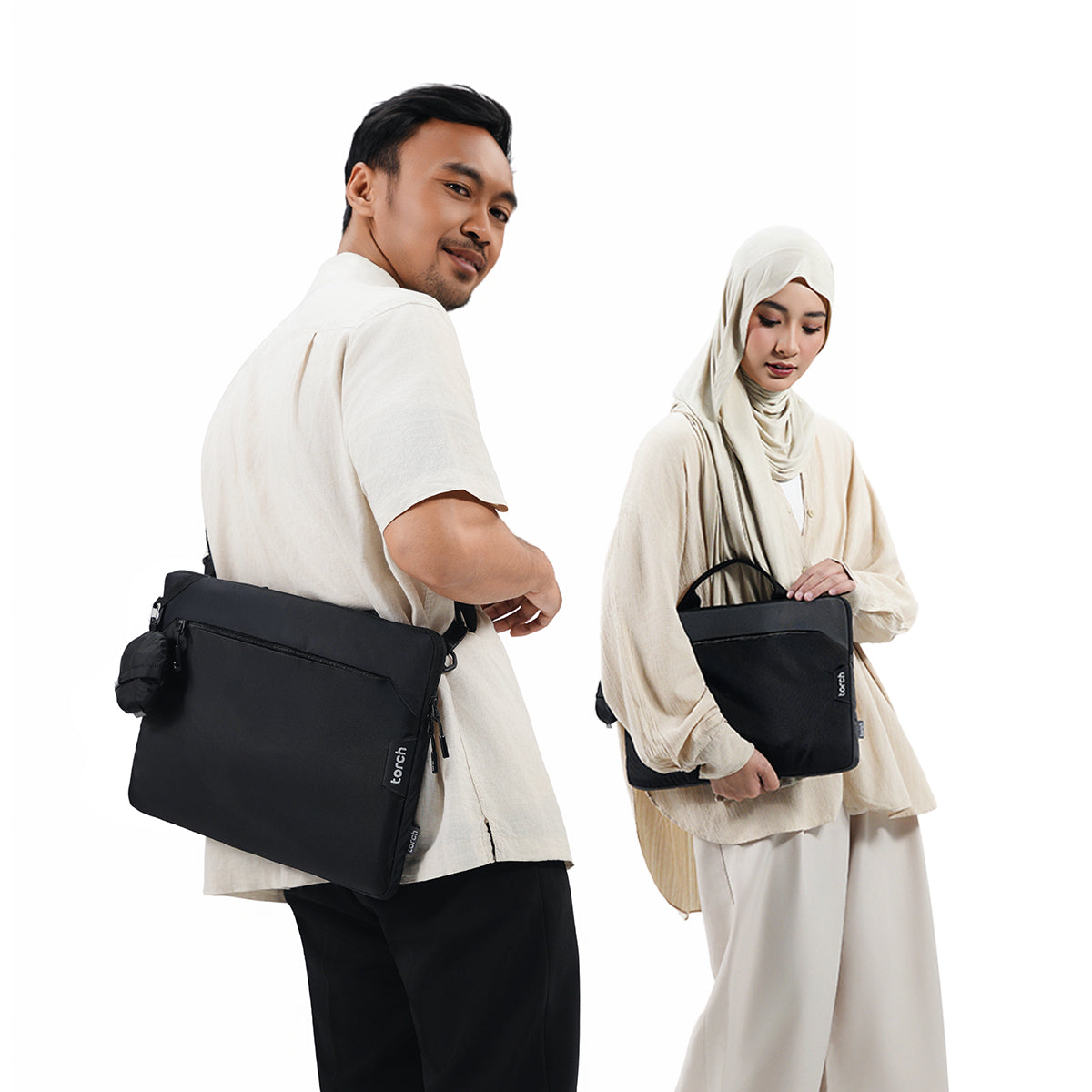 Mau jadi sleeve doang? Bisa. Mau jadi tas santai nyamping? Tinggal pasang. Fleksibel kayak hidup lu yang harus selalu siap pergi pake motor.Â