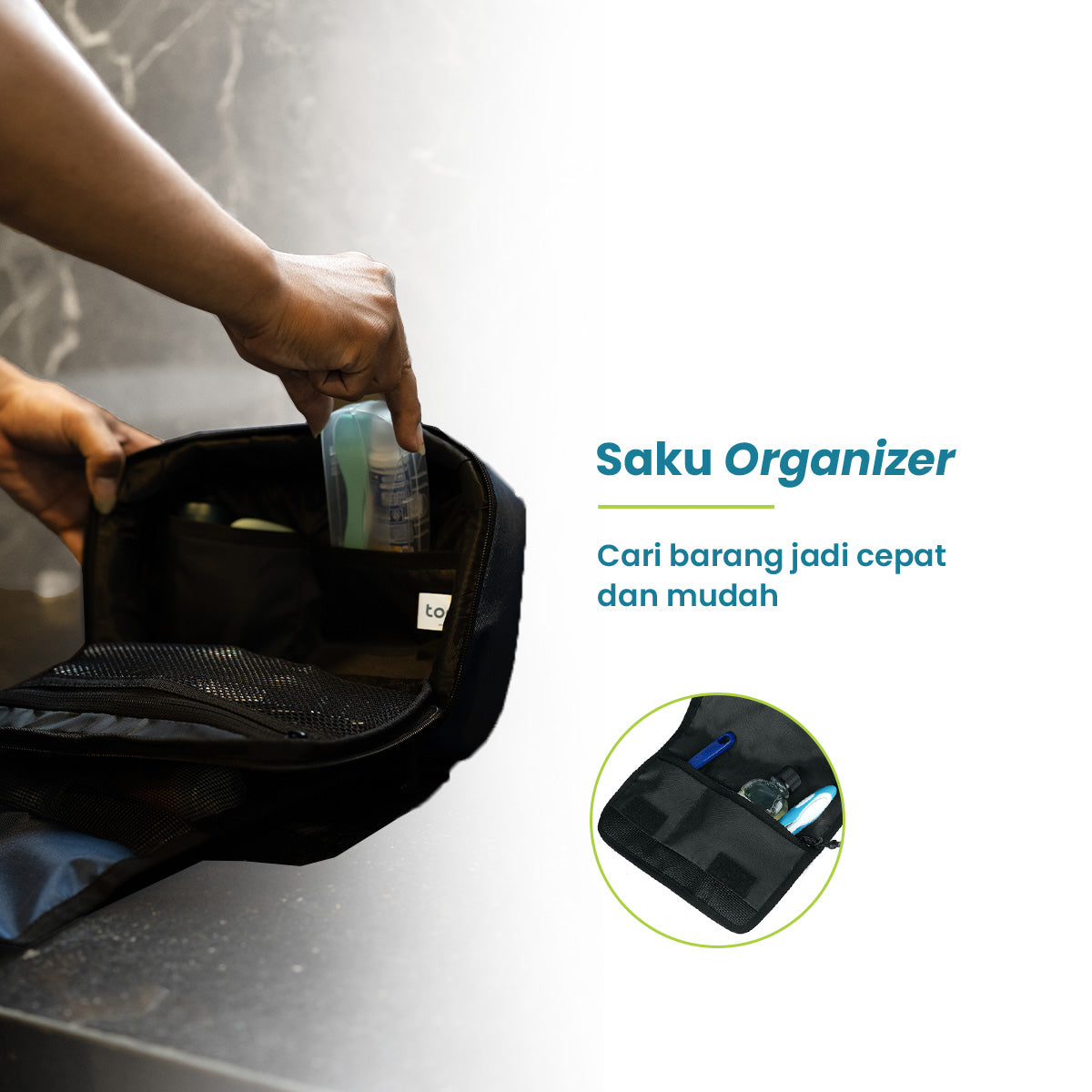 Jaga agar barangmu tetap rapi saat di perjalanan, dengan mengatur barangmu ke dalam saku-saku kecil pada Wana toiletries ini.