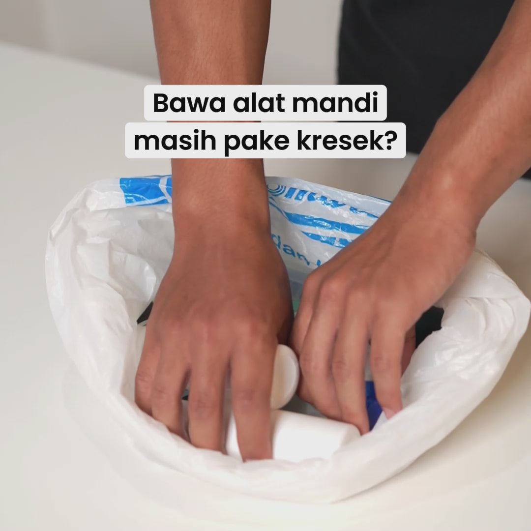 Wadah alat mandi yang sangat efektif dalam menyimpan semua peralatan mandi. Ada wadah baju gantinya juga. Senang punya wadah spt ini krn biasanya toiletry nggak ada wadah baju gantinya.