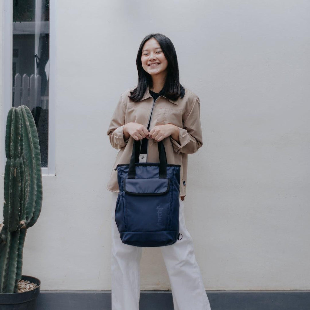 Backpack yang bisa dipakai dengan cara dijinjing (jadi tote bag) atau digendong (jadi backpack). Desainnya stylish cocok dipakai ke kantor, kampus, sekolah, atau traveling.