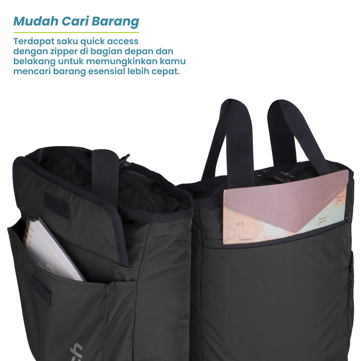Terdapat saku depan yang bisa memudahkan kamu untuk mengambil barang-barang dengan cepat. Misal, tisu, tempat kacamata, kunci kendaraan, make up, atau TWS Earphone.
